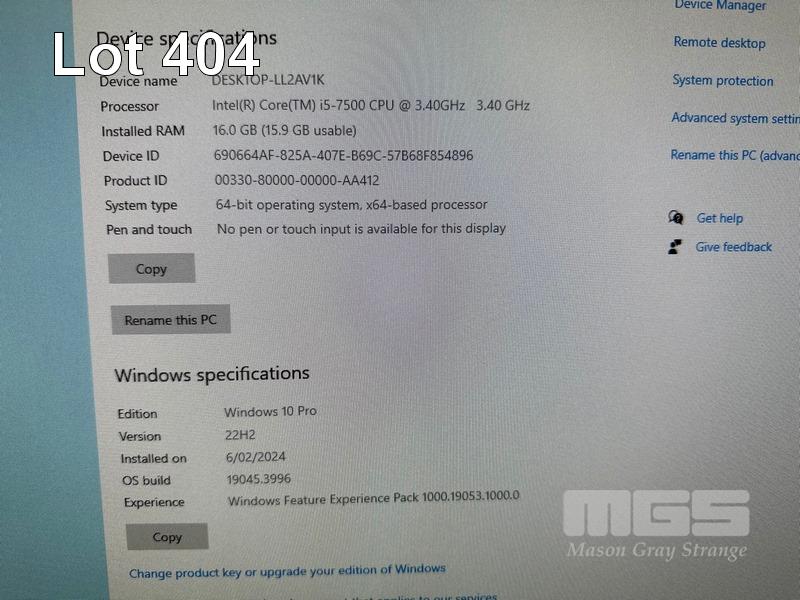 DESKTOP PC, CUSTOM BUILT, CORE i5 7500 (7TH GEN) @ 3.4GHz, 16GB DDR4 RAM, 250GB SSD, WINDOWS 10 PRO INSTALLED (NO KEYBOARD, NO MOUSE, NO CABLES)