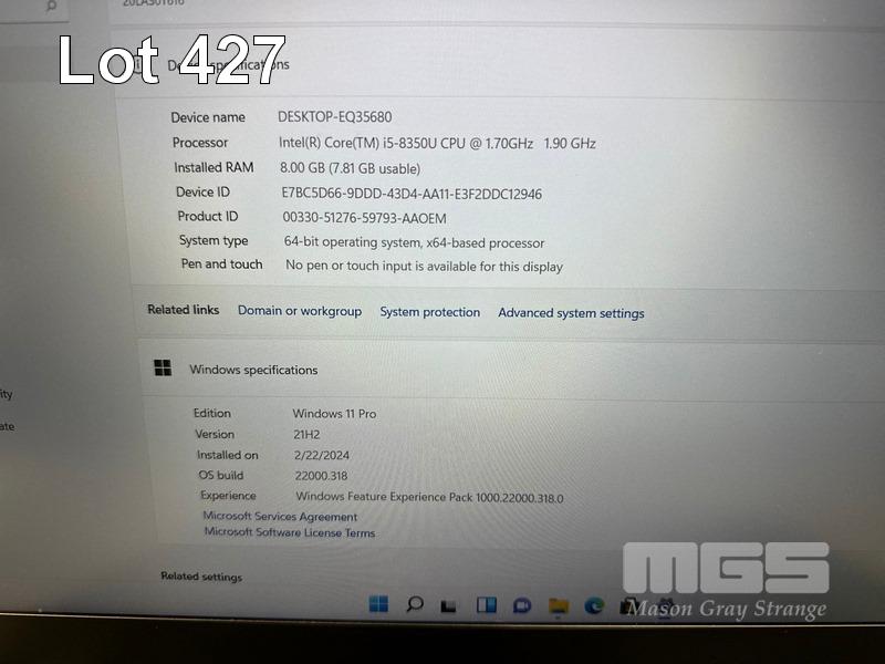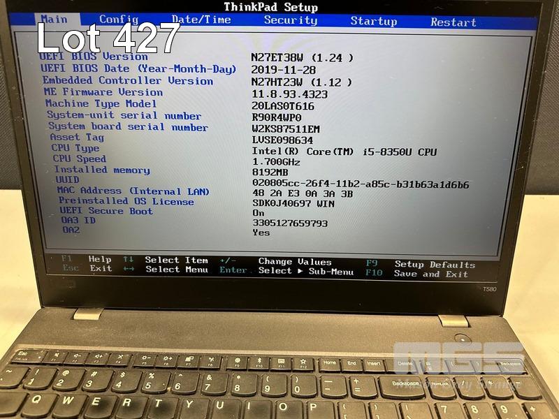 LAPTOP, LENOVO THINKPAD T580, TYPE 20LA, CORE i5 8350U (8TH GEN) @ 1.7GHz, 8GB DDR4 RAM, 500GB NVMe M.2 SSD, 15.6" WIDESCREEN (1920x1080), INTEL UHD GRAPHICS, Wi-Fi, BLUETOOTH, WINDOWS 11 PRO INSTALLED (NO USB-C POWER SUPPLY) (NOTE: MARKS ON SCREEN) S/N:R90R4WP0