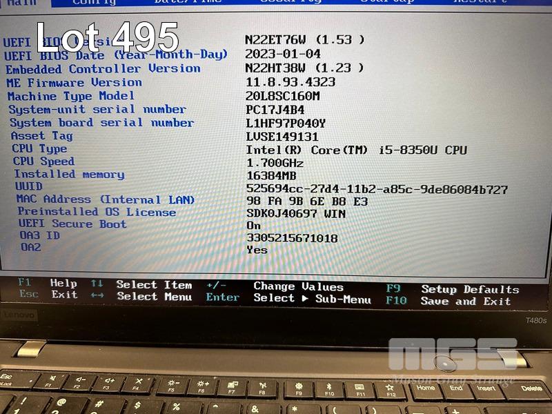 LAPTOP, LENOVO THINKPAD T480s, TYPE 20L8, CORE i5 8350U (8TH GEN) @ 1.7GHz, 16GB DDR4 RAM, 256GB NVMe M.2 SSD, 14" TOUCHSCREEN (1920x1080), INTEL HD VIDEO, Wi-Fi, BLUETOOTH, WINDOWS 11 PRO INSTALLED (NO USB-C POWER SUPPLY) (NOTE: MINOR MARKS ON SCREEN) S/N:PC17J4B4