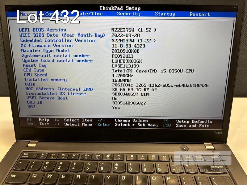LAPTOP, LENOVO THINKPAD T480s, TYPE 20L8, CORE i5 8350U (8TH GEN) @ 1.7GHz, 16GB DDR4 RAM, 256GB NVMe M.2 SSD, 14" TOUCHSCREEN (1920x1080), INTEL HD VIDEO, Wi-Fi, BLUETOOTH, WINDOWS 11 PRO INSTALLED (NO USB-C POWER SUPPLY) (NOTE: MINOR MARKS ON SCREEN) S/N:PC0Y2WLT
