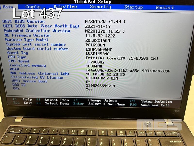 LAPTOP, LENOVO THINKPAD T480s, TYPE 20L8, CORE i5 8350U (8TH GEN) @ 1.7GHz, 16GB DDR4 RAM, 256GB NVMe M.2 SSD, 14" TOUCHSCREEN (1920x1080), INTEL HD VIDEO, Wi-Fi, BLUETOOTH, WINDOWS 11 PRO INSTALLED (NO USB-C POWER SUPPLY) (NOTE: MINOR DAMAGE TO CASING, MARKS ON SCREEN) S/N:PC1698WM