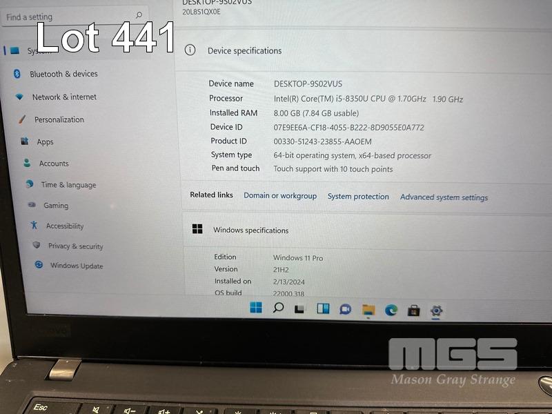 LAPTOP, LENOVO THINKPAD T480s, TYPE 20L8, CORE i5 8350U (8TH GEN) @ 1.7GHz, 8GB DDR4 RAM, 250GB NVMe M.2 SSD, 14" TOUCHSCREEN (1920x1080), INTEL HD VIDEO, Wi-Fi, BLUETOOTH, WINDOWS 11 PRO INSTALLED (NO USB-C POWER SUPPLY) (NOTE: BRIGHT SPOTS ON SCREEN) S/N:PC0W6FF7