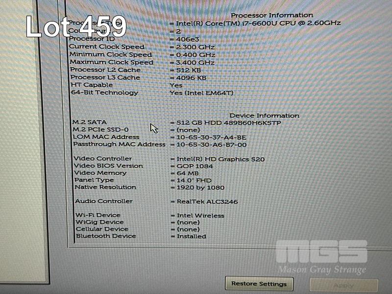LAPTOP, DELL LATITUDE 7480, CORE i7 6600U (6TH GEN) @ 2.6GHz, 16GB DDR4 RAM, 512GB M.2 SSD, 14" WIDESCREEN (1920x1080), INTEL HD GRAPHICS 520, Wi-Fi, BLUETOOTH, WINDOWS 10 HOME INSTALLED & POWER SUPPLY S/N:9Y61RN2