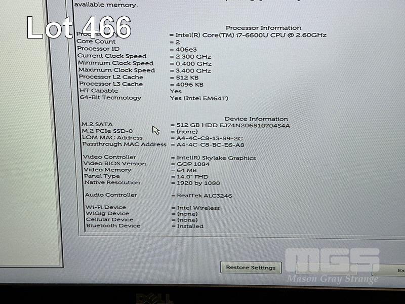 LAPTOP, DELL LATITUDE 7480, CORE i7 6600U (6TH GEN) @ 2.6GHz, 16GB DDR4 RAM, 512GB M.2 SSD, 14" WIDESCREEN (1920x1080), INTEL HD GRAPHICS 520, Wi-Fi, BLUETOOTH, WINDOWS 10 HOME INSTALLED (NO POWER SUPPLY) (NOTE: NO BATTERY, MESSAGE ON STARTUP "ALERT TPM COULD NO BE INITIALISED") S/N:3ZV28H2