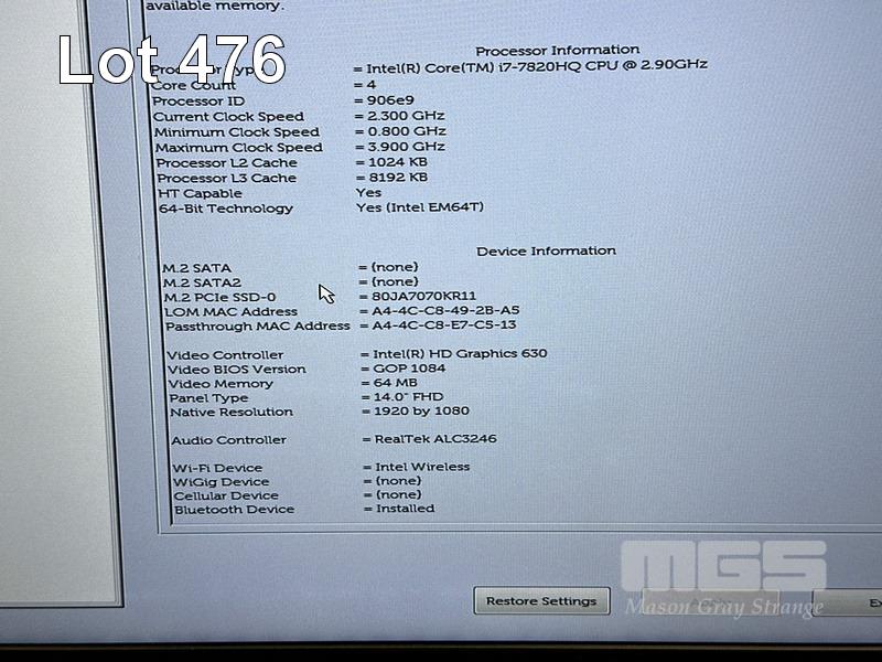 LAPTOP, DELL LATITUDE 5480, CORE i7 7820HQ (7TH GEN) @ 2.9GHz, 32GB DDR4 RAM, 512GB NVMe M.2 SSD, 14" WIDESCREEN (1920x1080), 2GB NVIDIA GEFORCE 930MX VIDEO, INTEL HD GRAPHICS 630, Wi-Fi, BLUETOOTH, WINDOWS 10 PRO INSTALLED & POWER SUPPLY S/N:4C8MFH2