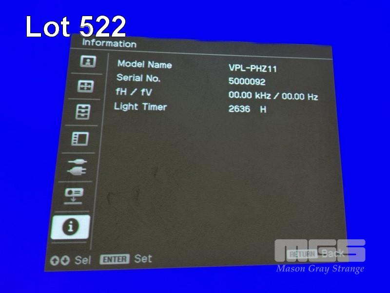 LASER PROJECTOR, SONY VPL-PHZ11, 5,000 LUMENS, 2,636 HOURS SHOWING (NO REMOTE) S/N:5000092