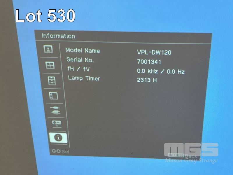 PROJECTOR, SONY VPL-DW120, 2,600 LUMENS, 2,313 HOURS SHOWING (NO REMOTE) S/N:7001341