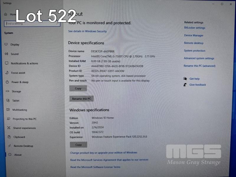 TINY-IN-ONE PC, LENOVO THINKCENTRE M710q, CORE i5 7500T (7TH GEN) @ 2.7GHz, 8GB DDR4 RAM, 256GB NVMe M.2 SSD, TIO24Gen3 23.8" LED-BL LCD WIDESCREEN, WEBCAM, Wi-Fi, WINDOWS 10 HOME INSTALLED & POWER SUPPLY (NO KEYBOARD, NO MOUSE) S/N:PC0SCU46