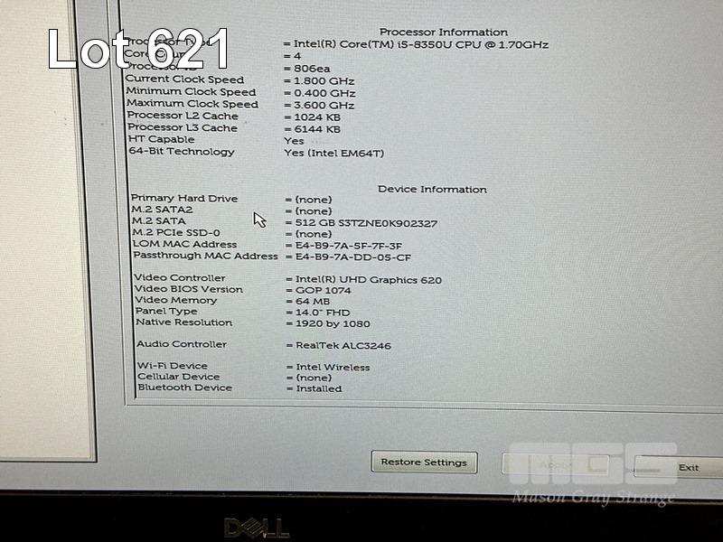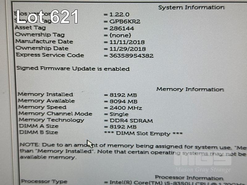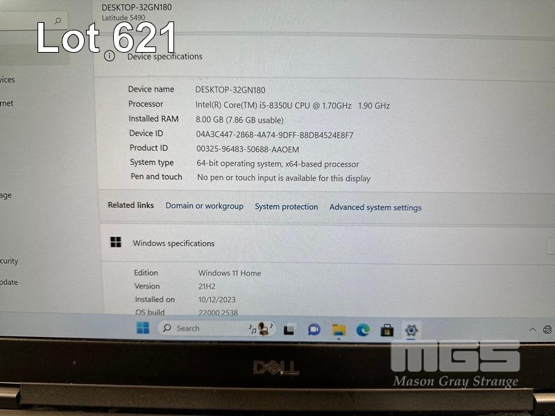 LAPTOP, DELL LATITUDE 5490, CORE i5 8350U (8TH GEN) @ 1.7GHz, 8GB DDR4 RAM, 512GB M.2 SSD, 14" WIDESCREEN (1920x1080), INTEL UHD GRAPHICS 620, Wi-Fi, BLUETOOTH, WINDOWS 11 HOME INSTALLED (NO POWER SUPPLY) (NOTE: FAULTY MOUSE BUTTONS, DAMAGE FRONT OF CASING, MARKS ON SCREEN) S/N:GPB6KR2
