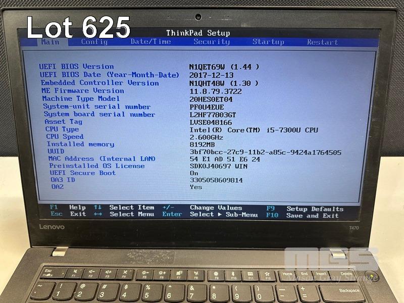 LAPTOP, LENOVO THINKPAD T470, TYPE 20HE, CORE i5 7300U (7TH GEN) @ 2.6GHz, 8GB DDR4 RAM, 256GB NVMe M.2 SSD, 14" WIDESCREEN (1366x768), INTEL HD VIDEO, Wi-Fi, BLUETOOTH, WINDOWS 10 PRO INSTALLED & POWER SUPPLY (NOTE: MARKS ON SCREEN) S/N:PF0U4EUE