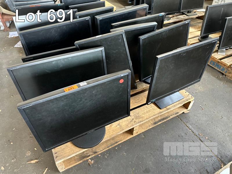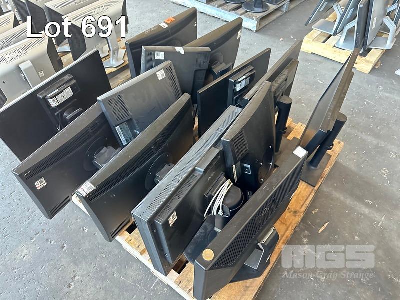 11 x SAMSUNG LCD MONITORS (3 x NO STANDS), 1 x NEC LCD MONITOR, 1 x DELL LCD MONITOR (NO CABLES)