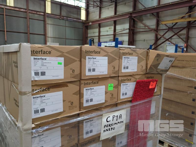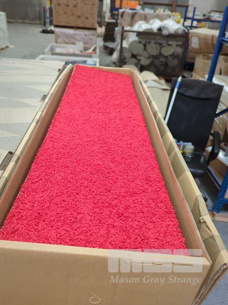 8 X PACKS OF CUT PILE CARPET PLANKS. SIZE 100 X 25 CM (W D). COLOUR PERSIMMON (RED). 32 M2 TOTAL.