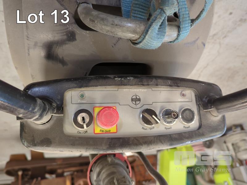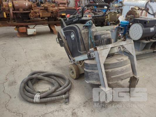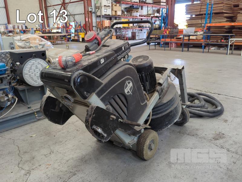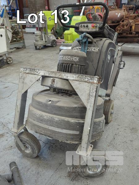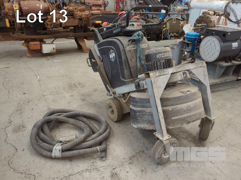 HTC 650 HDX HEAVY DUTY 4-HEAD FLOOR GRINDER. PLANETARY ACTION. GRINDING DISKS 4 X 160 MM. DISC SPEED 300 - 1400 RPM. GRINDING WIDTH 665 MM. 20 L WATER TANK. FABRICATED 2-WHEEL TROLLEY ATTACHMENT. 415 V. IN BLACK. WITH HOSE.