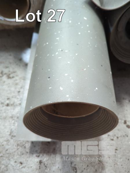 2 X ROLLS OF SHEET VINYL FLOORING 1@ IN LIGHT GREY WITH TERAZZO FLECK. 2.0 X 4.0 M (W L) APPROX. 1 @ IN GREY, NON-SLIP TERAZZO FLECK WITH GLITTERING. 2.0 X 5.0 M (W L) APPROX.