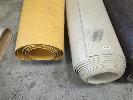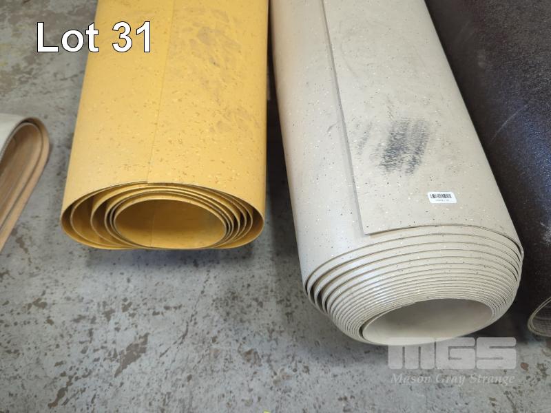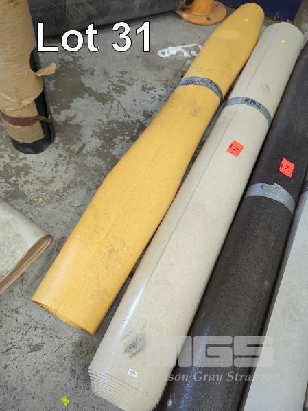 2 X ROLLS VINYL SHEET FLOORING 1 @ IN GREY CREAM WITH SPECKLED TERRAZZO. 1.9 M X 9.0 M (W L) APPROX. 1 @ IN GOLD YELLOW WITH TERRAZZO FLECK. 1.9 X 3.0 M (W L) APPROX.