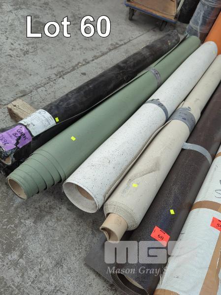 5 X ASSORTED ROLLS OF SHEET VINYL FLOORING. 1 @ IN CHOCOLATE COLOUR WITH TEXTURED NON SLIP SURFACE. 2.00 X 5.0 M (W L) APPROX. 1 @ IN BEIGE WITH TERRAZZO FLECK. 2.00 X 6.0 M (W L) APPROX. ** PART ROLE TRIMMED TO 980 MM WIDTH ** 1 @ IN WHITE WITH TERRAZZO FLECK. 2.00 X 7.0 M (W L) APPROX. 1 @ IN OLIVE GREEN WITH TERRAZZO FLECK. 2.00 X 5.0 M (W L) APPROX. 1 @ IN MIXED BEIGE GREY. 2.00 X 2.0 M (W L) APPROX