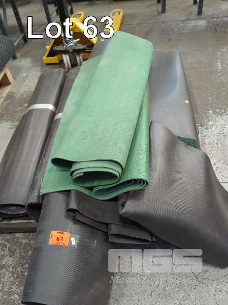 6 X ASSORTED REMNANT ROLLS OF RUBBER BACKED CARPET. VARIOUS SIZES (1 X PALLET)