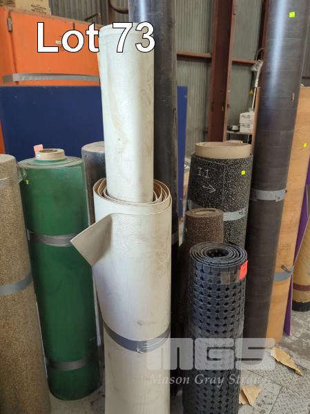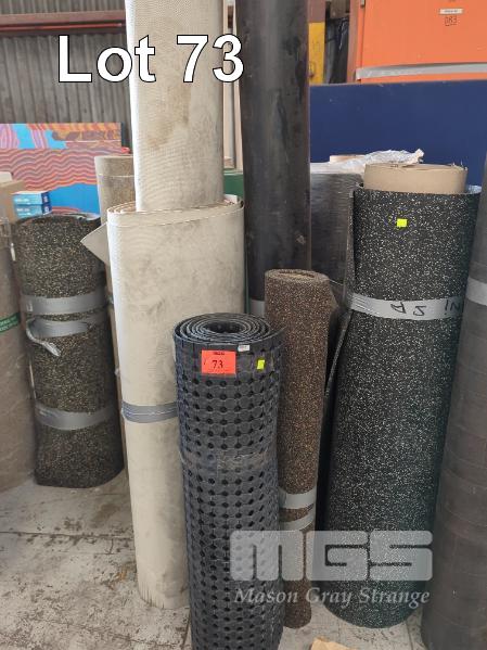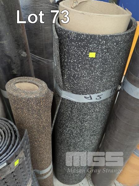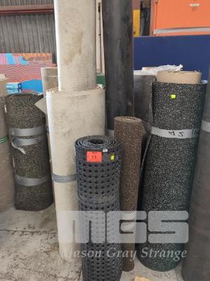 6 X OFFCUT ROLLS ASSORTED FLOORING VARIOUS GRADES & LENGTHS. 2 @ RUBBER FLOORING. 1 @ SHEET VINYL PLAIN 2 @ SHEET VINYL PLANK TIMBER LOOK 1 @ ROLL RUBBER MATTING. 0.92 X 3.0 M APPROX. ** AF **