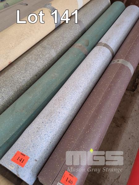 2 X ASSORTED ROLLS OF VINYL SHEET FLOORING. 1 @ IN LIGHT BLUE WITH TERRAZZO FLECKS 2.00 X 11.0 M (W L) APPROX. 1 @ IN SEA GREEN WITH TERRAZZO FLECKS 2.00 X 8.0 M (W L) APPROX.