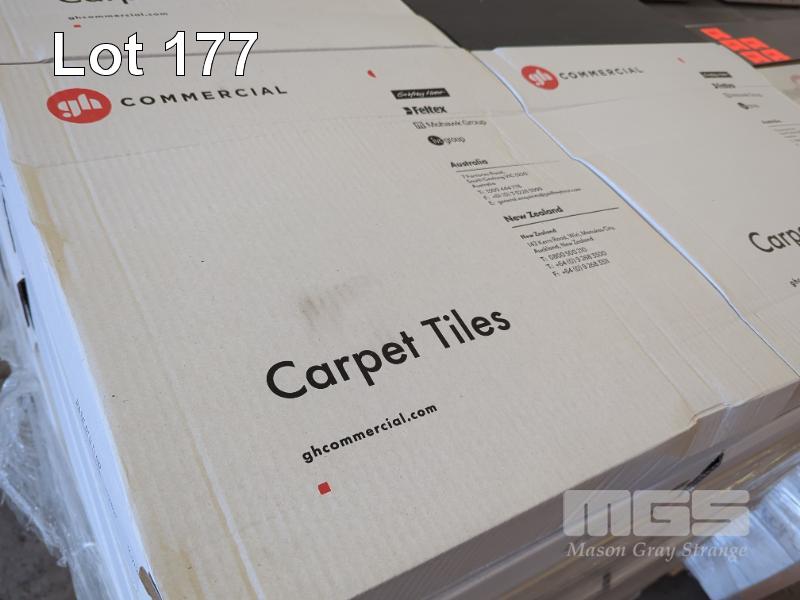 5 X BOXES 50 X 50 CM COMMERCIAL CARPET TILES. 5 M2 PER BOX. 25 M2 TOTAL. ALL NEW IN BOX