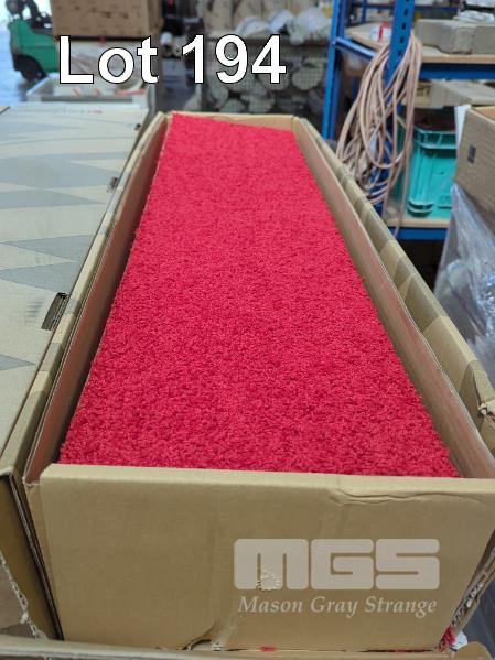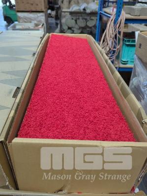 8 X PACKS OF CUT PILE CARPET PLANKS. SIZE 100 X 25 CM (W D). COLOUR PERSIMMON (RED). 32 M2 TOTAL.