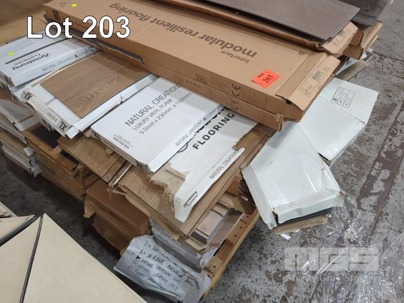 QUANTITY OF ASSORTED VINYL FLOOR PLANKS. MIXED BRANDS AND TYPES. MOST LENGTHS 1.5 M. ESTIMATED 25 PACKS.(1 X PALLET).