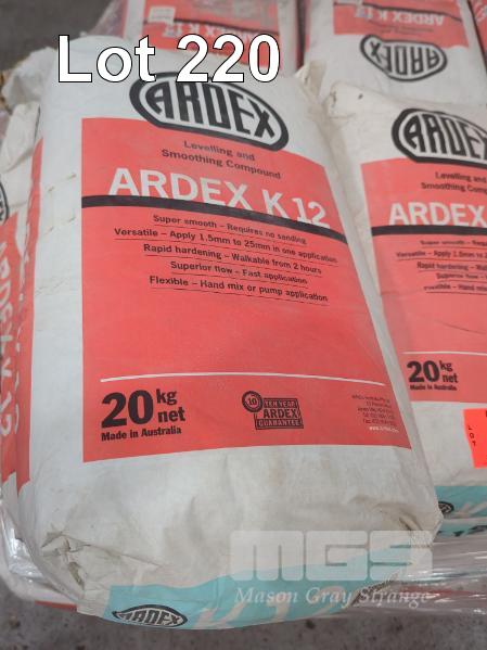 15 X 20 KG BAGS ARDEX K12 LEVELLING AND SMOOTHING COMPOUND.
