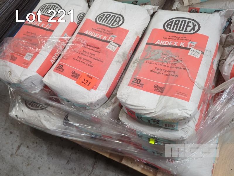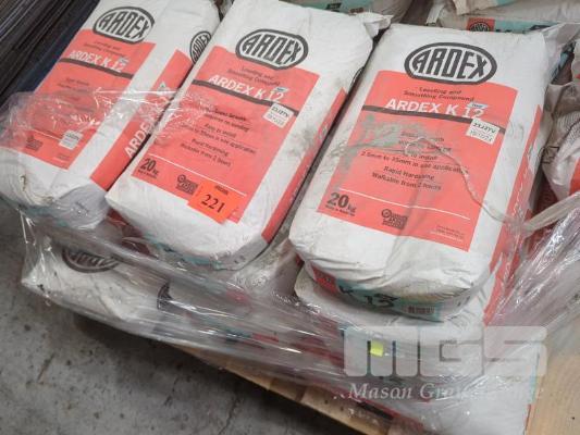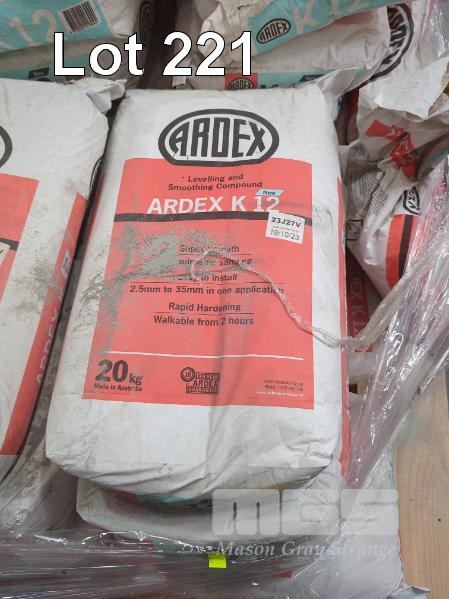 12 X 20 KG BAGS ARDEX K12 LEVELLING AND SMOOTHING COMPOUND.