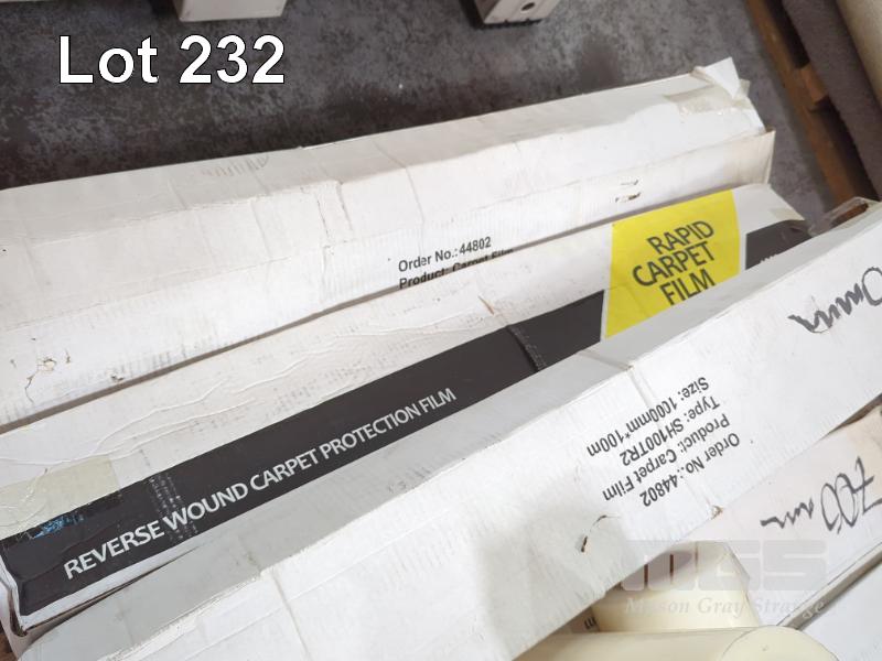 6 X ROLLS CARPET FILM. 0.7 X 100 M (W L) AS NEW. ALSO 4 X PART ROLLS.