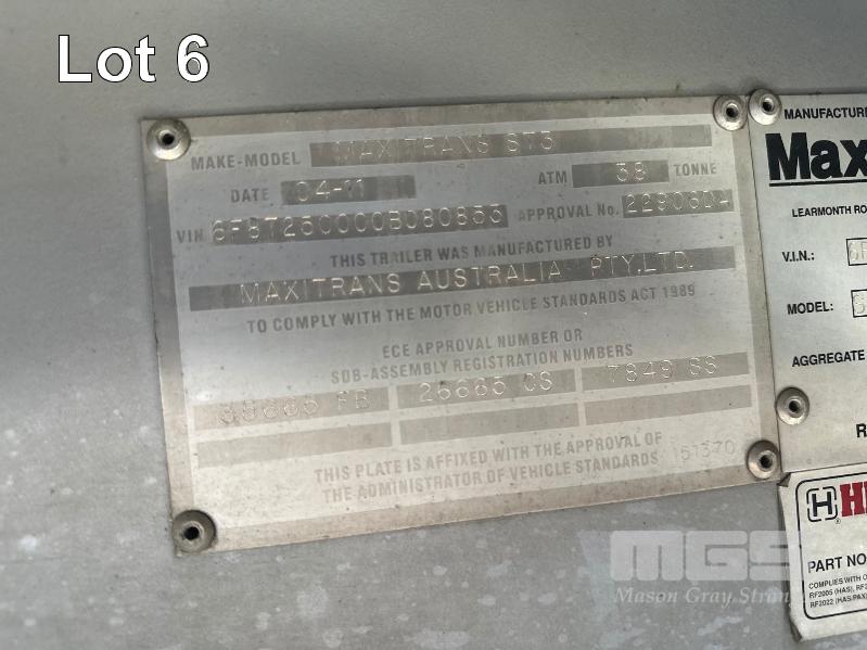 2011 FREIGHTER TAUTLINER SEMI TRAILER, 45' REG: SY 66 CO VIN: 6F8T250000B080853 TRIAXLE, AIRBAG, ALLOYS, MAXUS AXLES LOAD HOLD T LINER CURTAINS, GATES, TOOL BOX, WATER, SPARE ATM: 38 TONNE PAPERS