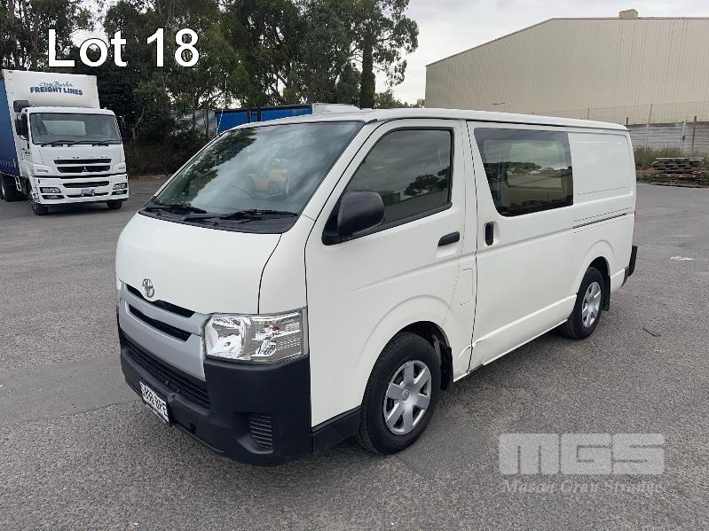 2017 TOYOTA HIACE 6.0 LWB VAN MOD: KDH201R MY16 REG: S898 BPE VIN: JTFHT02P200233101 ODO: 150,215kms SHOWING 3.0 LITRE DIESEL, AUTOMATIC TRANSMISSION, WHITE DUCO, AIR CON, POWER STEERING, POWER WINDOWS, CARGO BARRIER & CURTAIN REAR NUDGE BAR, TOW PACK BOOKS PAPERS, 1 x KEY