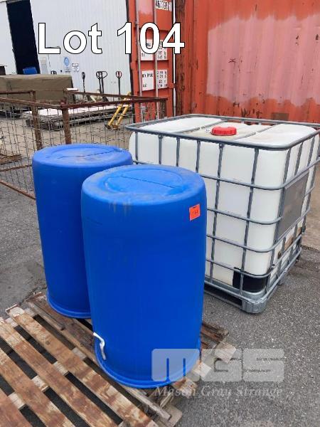 2 x 200 LITRE POLY DRUMS, OPEN TOP & 1000 LITRE IBC, GOOD ORDER