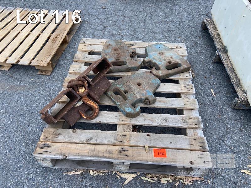 FORKLIFT HOOK LIFT ATTACHMENT & 3 x FORD TRACTOR COUNTER WEIGHTS