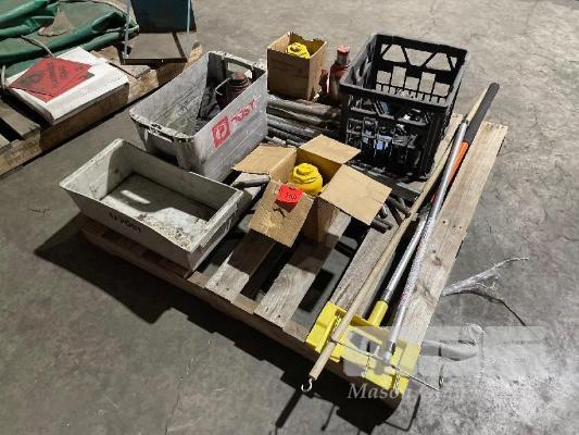 4 x BOTTLE JACKS & ASSORTED WHEEL BRACES, SAFETY SIGNS & ROADSIDE SAFETY REFLECTORS