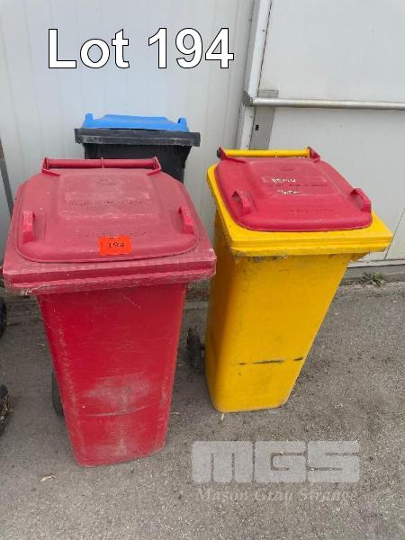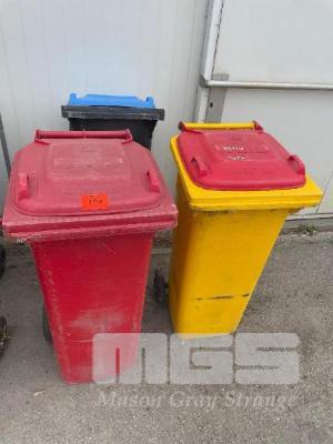 3 x WHEELIE BINS, 120 LITRE, MOBILE, PLASTIC (1 WITH NO WHEELS)