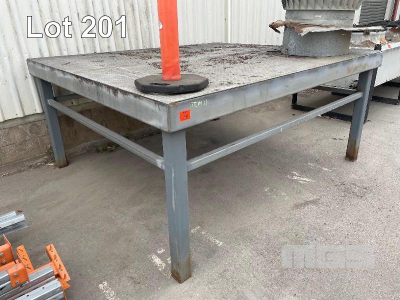 HEAVY DUTY LOADING PLATFORM, 2700 x 2400 x 1200mm (H) TREAD PLATE TOP, 100 x 100mm SQUARE LEGS