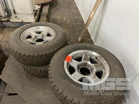 4 x 5 STUD 4WD ALLOY RIMS, WITH BRIDGESTONE DUELLER A/T TYRES, 70%, LT215/75R15