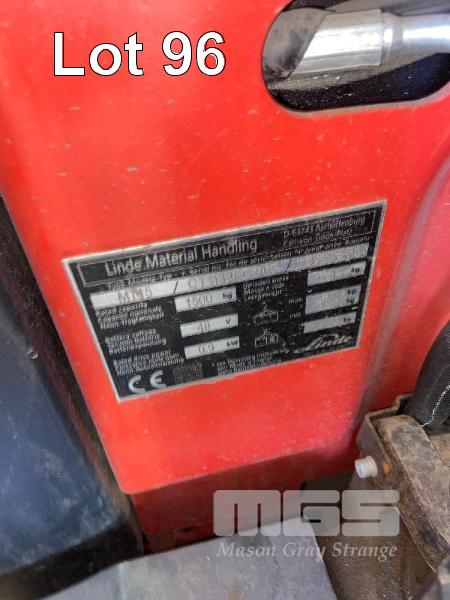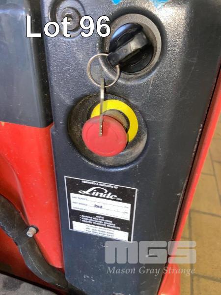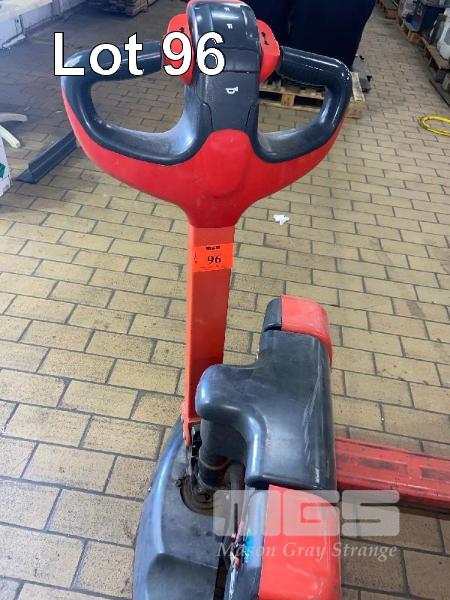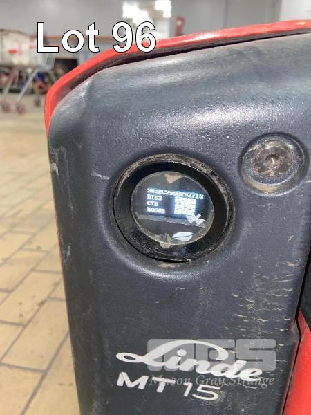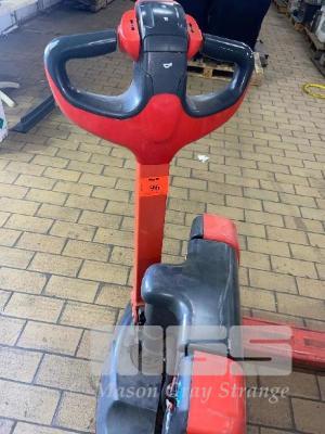 WALK BEHIND POWERED PALLET TRUCK, LINDE MOD: MT-15 1,500kg 124.3 HOURS GOOD UNIT.