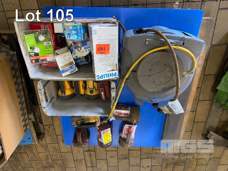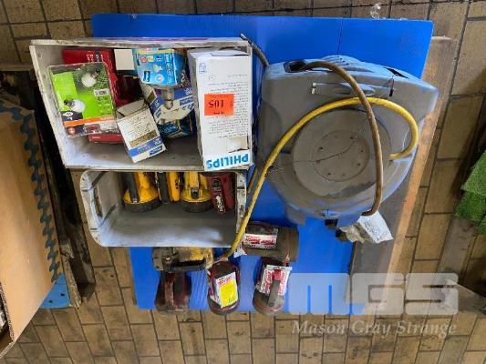 9 x ASSORTED TORCHES, RETRACTABLE AIR REEL & 1 x CARTON MIXED LIGHT GLOBES