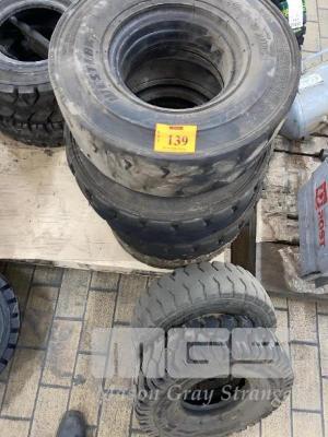 7 x PNEUMATIC FORKLIFT TYRES, VARIOUS SIZES, USED, 6.00 X 9