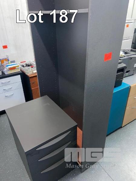 BOOKSHELF, 1800 x 900mm, MAPLE/GREY LAMINATE, 4 TIER, 3 DRAWER SET & 2 x UNDERDESK MOBILE