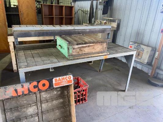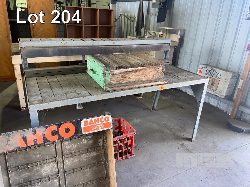 HEAVY DUTY STEEL FRAMED BENCH, TIMBER TOP WITH SHELF, 1800 x 750mm