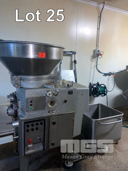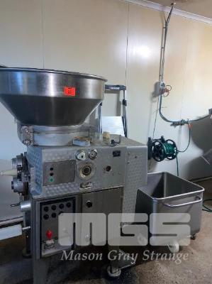 SMALLGOODS FILLER, VEMAG TYPE: 855 415V MAX PRESSURE: 135 KP cm2 & STAINLESS STEEL TIPPER TROLLEY, DOUBLE SKIN