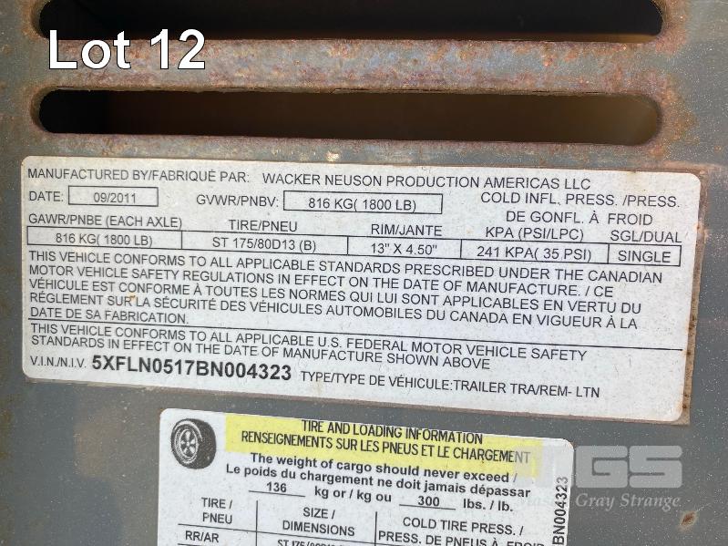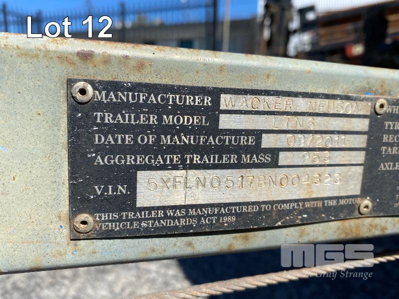 2011 LIGHTING TOWER, WACKER NEUSON MOD: LTN6 TRAILER MOUNTED, SINGLE AXLE BALL HITCH REG: NO PLATES VIN: 5XFLN0517BN004323 POWERED BY KOHLER 19kw 3 CYLINDER DIESEL ENGINE, HOURS: 5,552 SHOWING WINCH EXTENDABLE MAST, 4 x LIGHTS MH, 3 x STABILIZING LEGS, JOCKEY WHEEL & BRAKES ATM: 953kg
