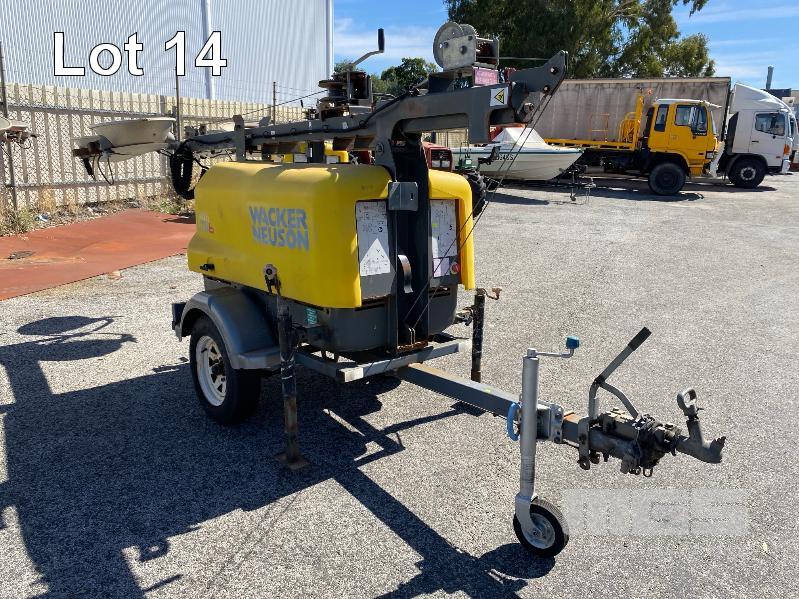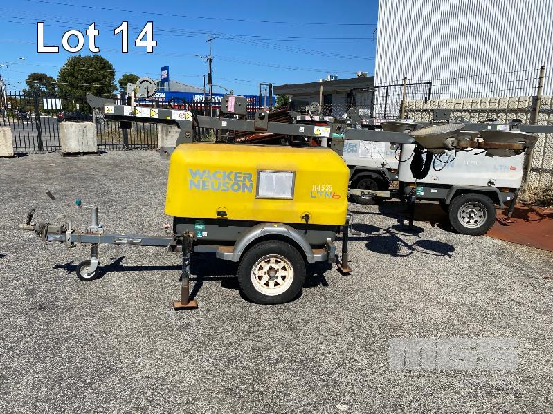2010 LIGHTING TOWER, WACKER NEUSON/PCB AUTO MOD: LTN6 TRAILER MOUNTED, SINGLE AXLE, BALL HITCH REG: NO PLATES VIN: 6T9T27V97B054N008 POWERED BY KOHLER 19kw 3 CYLINDER DIESEL ENGINE, HOURS: 6,683 SHOWING WINCH EXTENDABLE MAST, 4 x LIGHTS MH, 3 x STABILIZING LEGS, JOCKEY WHEEL & BRAKES ATM: 953kg
