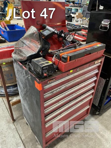 WITH BATTERY TESTER,POWER SUPPLY, JUMPER CABLES, ETC