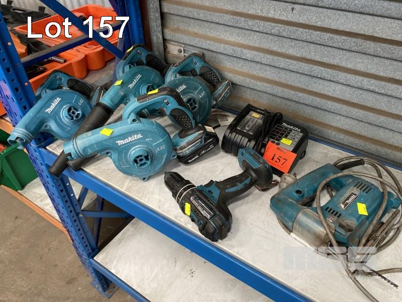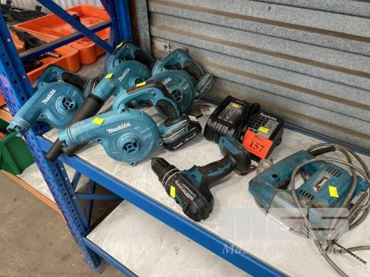 MAKITA JIGSAW, CORDLESS DRILL & 4 x BLOWERS, DUB182 WITH CHARGER
