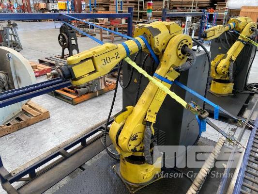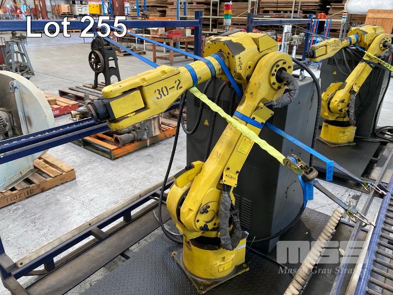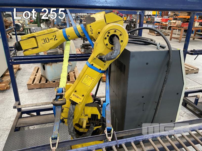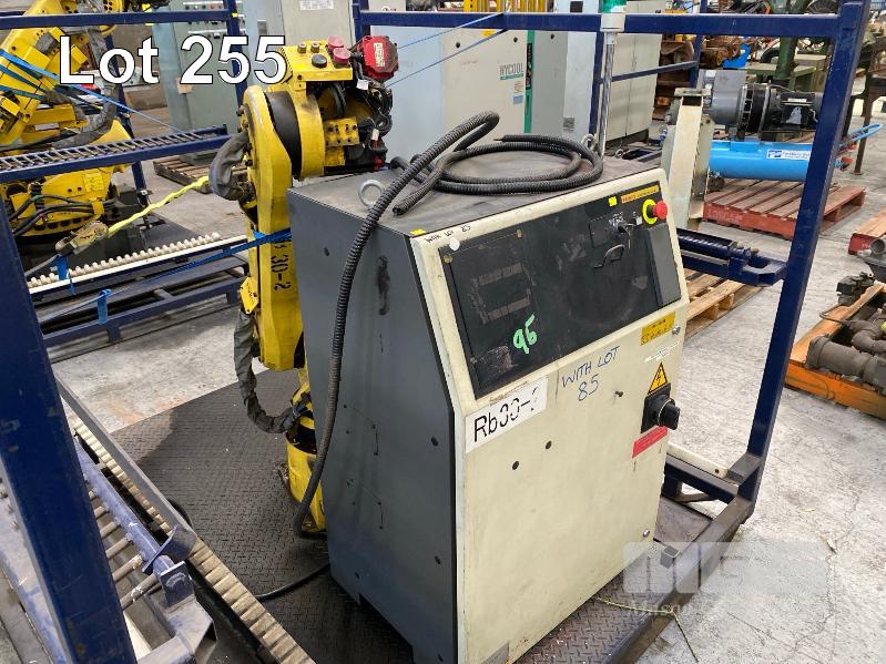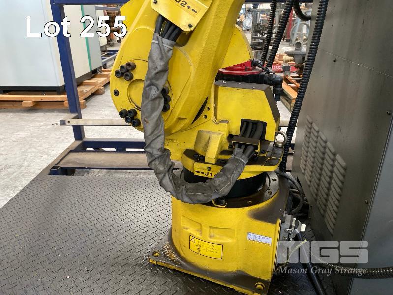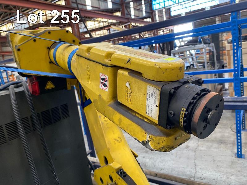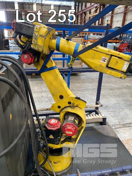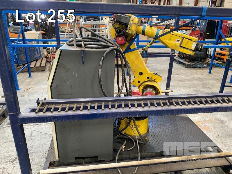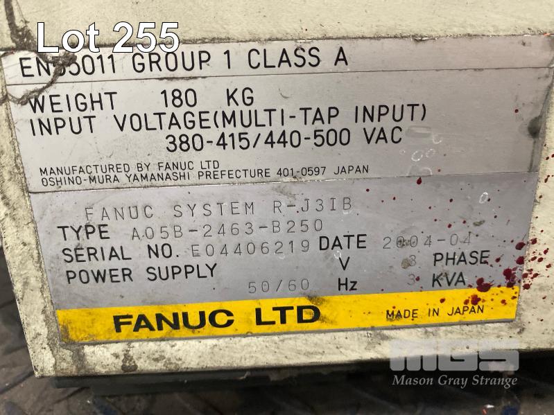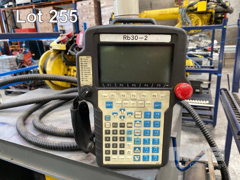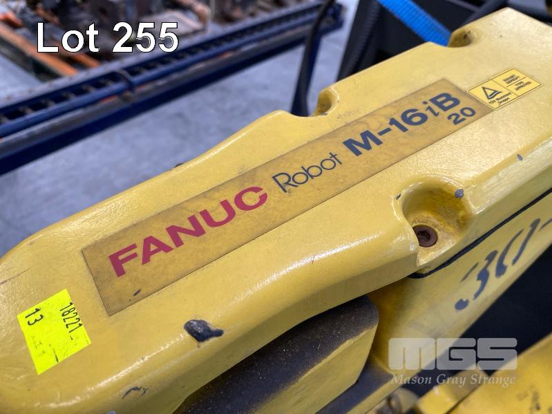 ROBOT, FANUC MOD: M-16IB-20 TYPE: A05B-1216-B202 DOM: 2004 WEIGHT: 320kg WITH CONTROL CABINET, FANUC SYSTEM R-J31B TYPE: A05B-2463-B250 INCLUDING TEACH PENDANT CONTROLLER TYPE: A95B-2301-C373 WITH 8 X YELLOW HEAVY DUTY WIRE MESH GUARD PANNELS (INCLUDING STILLAGE)