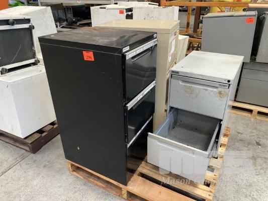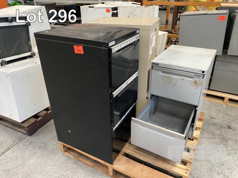 2 x 3 DRAWER FILING CABINETS, FAWN & BLACK STEEL & 2 DRAWER, GREY STEEL