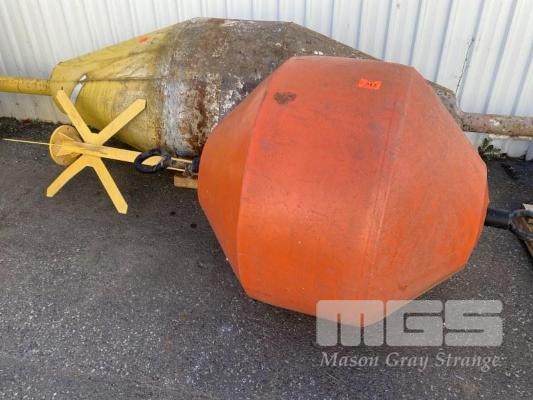 MARINE BUOY, POLY RED, CYLINDRICAL, 1100 DIA x 1200mm (L) WITH STEEL MOUNTING ATTACHMENT